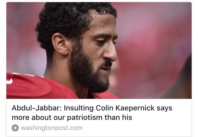 I celebrate that Colin Kaepernick can choose to sit during the national anthem, to protest injustices he sees (degrees to which we may disagree on, yes), because he believes that our society has fallen short of America’s best ideals.