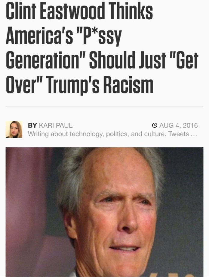 Been thinking about Political Correctness and the use of the word “Pussy”, and thought of #ClintEastwood. And you know what, the word could be used more. My turn (five mental jumping jacks, and go):